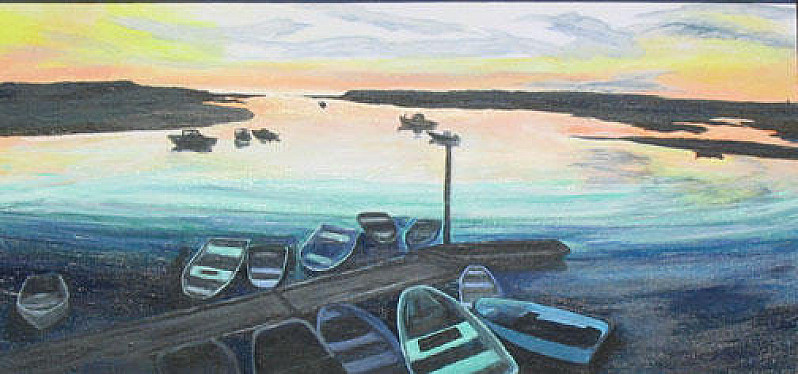 Lisa Anderson-Bisson: (b. 1955) Talented young artist whom we commissioned to paint a view from our condo balcony of Shankpainter Pond and surrounding wetlands. This piece of a sunset at Herring Cove was the first she submitted for art auction sale, and we bought it.