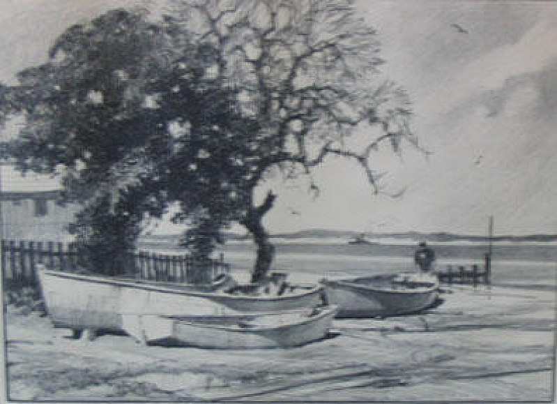 Gordon Hope Grant:(1875-1962)Born in San Francisco, he is known for his etchings and paintings of marine subjects. Studied at the Lambeth and Heatherley art schools in London. Skilled with watercolor, Grant was honored many times by the American Watercolor Society. His reputation as a marine painter became much stronger after 1906 when prints of his painting of the U.S.S. Constitution went on the market with popular reception, and the monies were used to preserve the old ship. Grant and others were successful lobbying Congress to designate the vessel a national monument, and Grant's painting of the U.S.S. Constitution is in the White House collection, where it has hung in the Oval Office. Memberships included the Society of illustrators, Salmagundi Club, Allied Artists of America, New York Society of Painters, American Federation of Artists and others. Member of NA, ANA, Allied Artists Am, AFA, SAE, Chicago SE, AWCS, Phil. WCC, Baltimore, Ship Model Society and WCC, Calif, and others. Exhibited at AIC 1906-11, 1913, 1937, 29, 33 and 35-62. Also at NAD 1926 (prize), SC, 1929 (prize), 1931 (prize) AWCS (prize) Chicago SE 1935 (prize) PAFA 1936-37, Paris Salon, 1937 (medal winner), All. Aritsts American, 1942 (prize), LOC 1944-46. Works on display at Kendall Whaling Museum, Mystic Seaport Museum, New York Historical Soc., MMA, NYPL, Joslyn Museum, Richmond Museum of Art, Bropoks Mem Art. Gal, Davenport Museum of Art, New Britain, US Naval Academy, the White House , Corcoran Gallery, MMA, and in Kennebunkport, MA. Extremely well listed and collected artist.