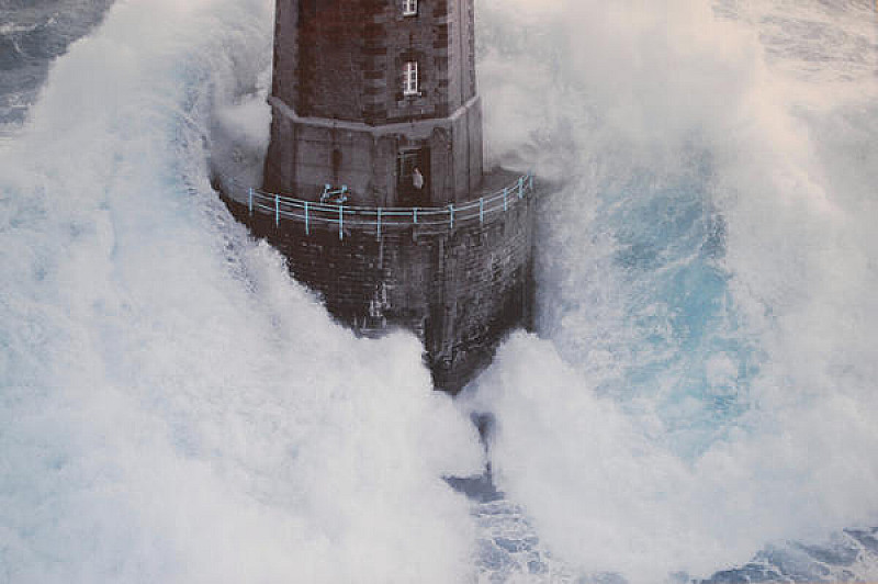 The world-famous photograph is one of a series Guichard took called Lighthouses in the Storm (Les Phares dans la Tempete). Since the Brittany lighthouses are now automated and no longer have any lighthouse keepers, this photo is now also of historic value, as well as terrific dramatic interest.
