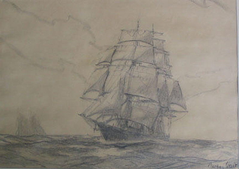Gordon Hope Grant: (1875-1962)Born in San Francisco, Grant is known for his etchings and paintings of marine subjects. Studied at the Lambeth and Heatherley art schools in London. Skilled with watercolor, Grant was honored many times by the American Watercolor Society. His reputation as a marine painter became much stronger after 1906 when prints of his painting of the U.S.S. Constitution went on the market with popular reception, and the monies were used to preserve the old ship. Grant and others were successful lobbying Congress to designate the vessel a national monument, and Grant's painting of the U.S.S. Constitution is in the White House collection, where it has hung in the Oval Office. Memberships included the Society of illustrators, Salmagundi Club, Allied Artists of America, New York Society of Painters, American Federation of Artists and others. Member of NA, ANA, Allied Artists Am, AFA, SAE, Chicago SE, AWCS, Phil. WCC, Baltimore, Ship Model Society and WCC, Calif, and others. Exhibited at AIC 1906-11, 1913, 1937, 29, 33 and 35-62. Also at NAD 1926 (prize), SC, 1929 (prize), 1931 (prize) AWCS (prize) Chicago SE 1935 (prize) PAFA 1936-37, Paris Salon, 1937 (medal winner), All. Aritsts American, 1942 (prize), LOC 1944-46. Works on display at Kendall Whaling Museum, Mystic Seaport Museum, New York Historical Soc., MMA, NYPL, Joslyn Museum, Richmond Museum of Art, Bropoks Mem Art. Gal, Davenport Museum of Art, New Britain, US Naval Academy, the White House, Corcoran Gallery, MMA, and in Kennebunkport, MA. Extremely well listed and collected artist.