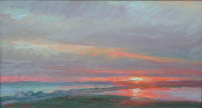 "Sunset Over Provincetown," c. 2006, oil on canvas, 10 x 18, SLL